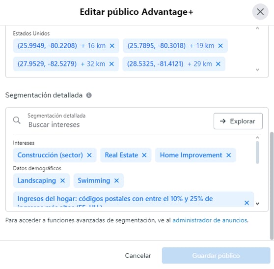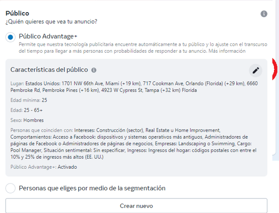 This is the most important step! Make sure Advantage+ Audience is activated, then click on the pencil icon in the top right corner of the audience settings to enter detailed targeting.
